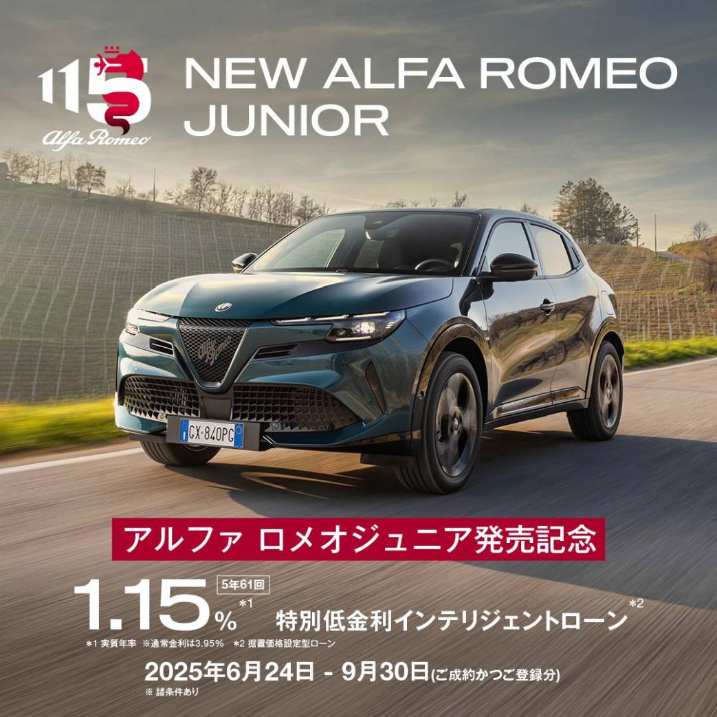 現在展開中のアルファ ロメオ ジュニア 1.15%特別低金利インテリジェントローン、いよいよ期間が残り僅かとなってきまし...