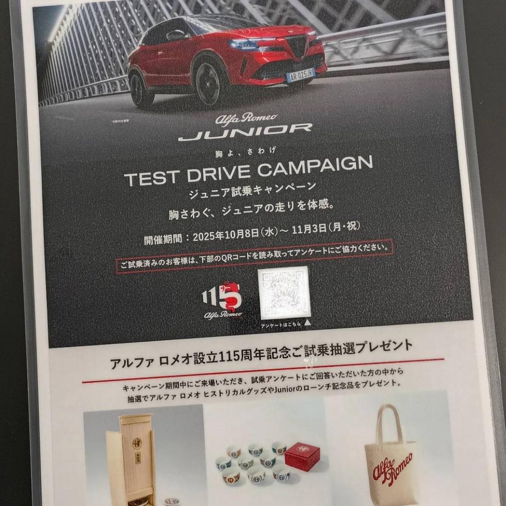 11月3日までジュニア試乗キャンペーン実施中!! ショールームでジュニアに試乗いただき、専用のQRコードからアンケ...